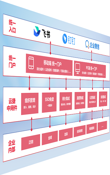 对协作平台提供支持服务,,,支持企业应用与协作平台对接,,,包含组织同步、、、、消息集成、、、待办集成等。。。支持目前主流的协作平台:钉钉、、企微和飞书。。。。